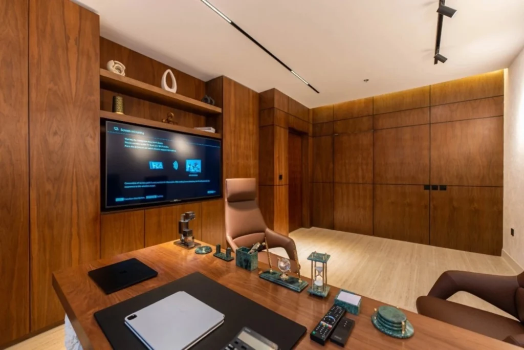 بيئة عمل مريحة ومبتكرة: نختار بعناية الأثاث والإكسسوارات المناسبة وندمج التقنيات الحديثة لضمان تجربة عمل سلسة وفعالة، مثل أنظمة الإضاءة الذكية وتقنية التحكم في درجة الحرارة.
